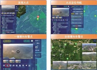 发现火情后,具有火点定位上报、火点位置导航、一键看向告警点、周边资源分析、融合通信等功能,还可实现远程应急指挥调度、融合通信等功能。在火灾处理完成后,还可对火灾基本信息、火灾态势信息、火灾扑救情况、火灾肇事者情况进行采集、记录和评估,评估森林火灾损失和生态环境资源损失,生成灾后评估报告。