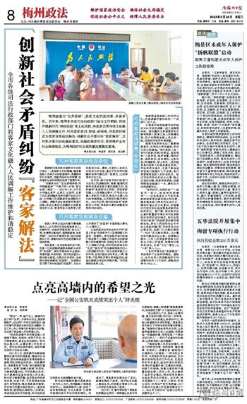 一系列矛盾纠纷“客家解法”有效维护了社会和谐稳定。据统计,全市各类人民调解组织年均调解纠纷约1.8万余件,调解成功率98.5%以上。