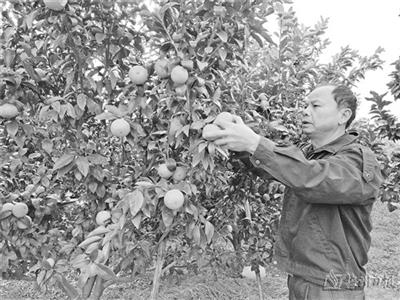 龙塘村沃柑种植基地负责人正在检查沃柑生长情况。(王丽莉 摄)