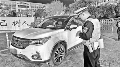 执勤民警对屡劝不改的违停机动车驾驶人进行处罚。(陈坚平 摄)