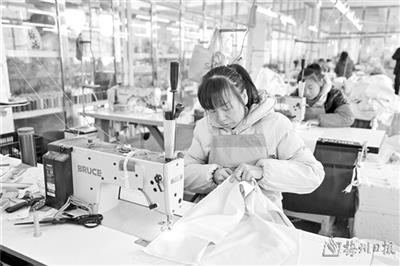 近日,在位于淳安县浪川乡的芸卉服饰共富工坊内,工人们在加工服装。