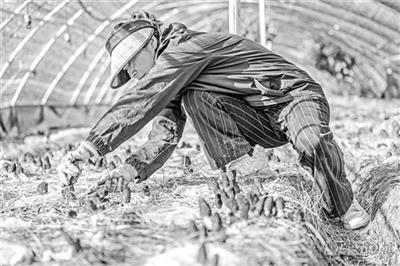 3月10日,在香格里拉市三坝纳西族乡江边村,村民在大棚里采收羊肚菌。