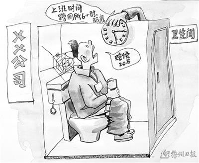 员工在上班时间,多次长时间待在卫生间里,最长6小时21分钟。公司发现后将其解雇,员工不服,认为公司违法解除劳动合同,要求公司支付赔偿金20万。近日,南通市通州区人民法院审理了这起劳动争议案件,最终认定公司系依法解除劳动合同,未支持原告的诉讼请求。林勉/图