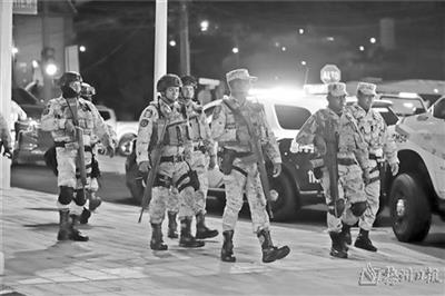 5月22日晚,安全人员在墨西哥新莱昂州的事发现场警戒。 (新华社发)