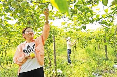 该基地是梅西镇引进梅州市岭明发展有限公司,共集约200多亩土地规模化种植百香果优良品种“钦蜜9号”,亩产量预计可达2500斤,创造了50多个就业岗位,使百香果真正成为村民的“致富果”。(图/文 吴丽伶)