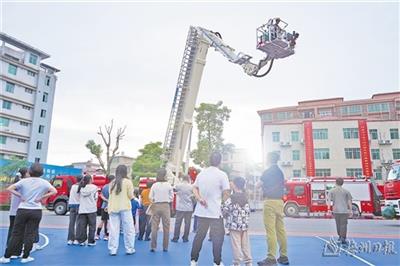 消防员带领亲子家庭走进消防云梯车的“奇妙世界”。