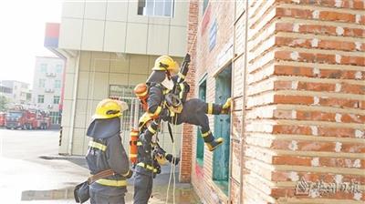 绳索攀爬、水带铺设、百米翻越板障、负重登楼、水域救援……蒸着“桑拿”,流着汗水,这些就是消防员日常训练的真实写照。
