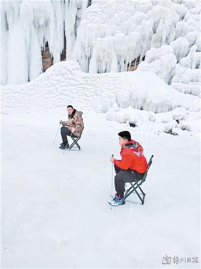 刘梓辰和爸爸在冰天雪地里玩滑冰车(打冰嘎)。 (作者供图)