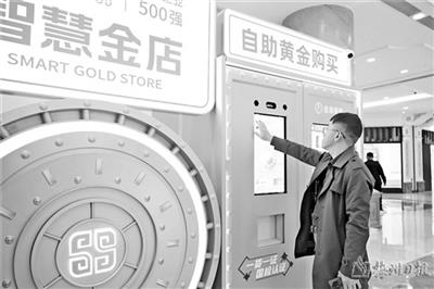5月5日,在上海市普陀区一家商场内的“智慧金店”,市民了解自助黄金购买设备。