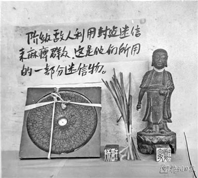 ▶一九五三年五华县人民政府收缴的反动会道门封建迷信道具。