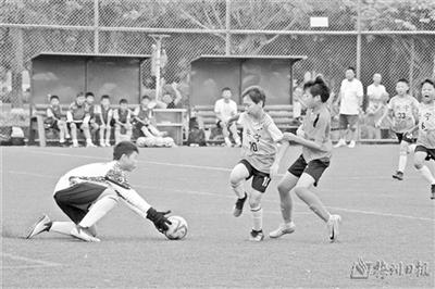 梅州市第十届运动会首个竞体项目——男女足E组比赛完赛。(陈思杰)