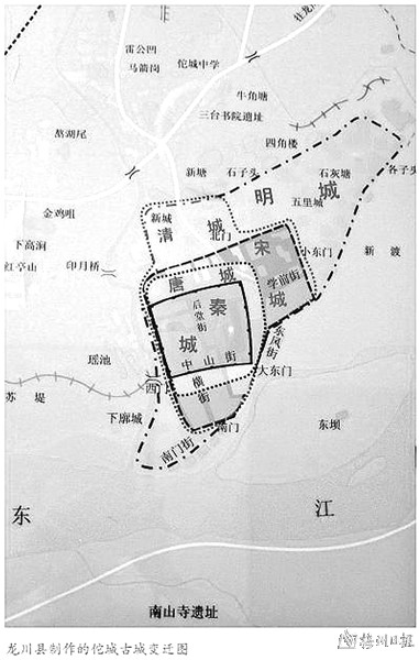 龙川县制作的佗城古城变迁图