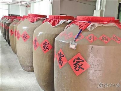 客家娘酒的魂灵,深藏在《嘉应州志》泛黄的册页里。“老酒仍为频开瓮。”宋人笔下的诗句,至今仍在客家民居、酒坊间回响。喝娘酒,更建议喝存放多年的老酒。老熟的酒,二十四节气在酒瓮里流转成歌,浓稠如油,其色赤红,其味醇厚。年份越长,酒香越醇,越滋阴固肾。无怪乎梅县客家娘酒酿造技艺区级传承人李雅伊常说:“在黄酒的秘方中,最宝贵的一味药引,叫光阴。”