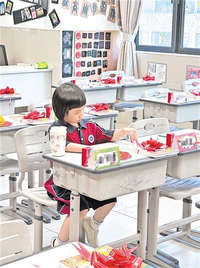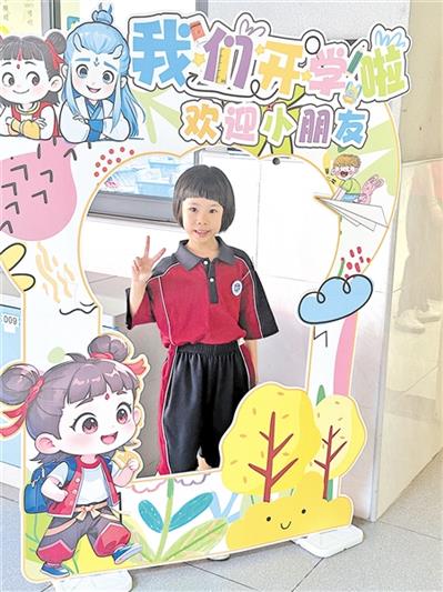 孩子今天正式成为一名小学生了,看着她背上大大的书包,自己整理好宿舍床铺,来到新教室报道,在课桌上翻看新书,不禁感叹,她真的长大了。(黄宝珠)