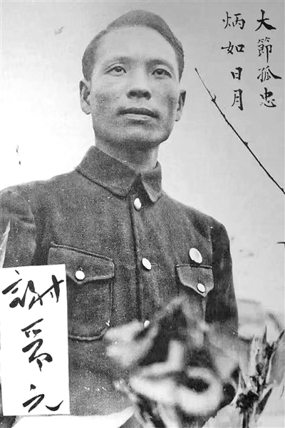 谢晋元(1905—1941),字中民,广东梅州蕉岭县人。黄埔军校第四期,历任国民革命军排长、连长、营长、副团长、师参谋、旅参谋主任、团长等职。1937年淞沪会战中率400余人(被称为“八百壮士”)死守三面受敌、孤立无援的上海四行仓库。谢晋元率孤军浴血奋战了四昼夜,击退日军十余次进攻,毙伤日军200余人。四行仓库巍然屹立。后部队退入公共租界。其间,谢晋元多次拒绝日军、汪伪的威胁利诱。其战斗事迹之英勇,爱国气节之豪壮,振奋国人,震惊世界。