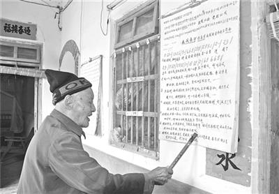 2014年1月5日,春节前夕,我们前往平远慰问抗战老兵,在钟德元老人家中,墙上挂满了《血战长沙》《出征歌》《救亡进行曲》等抗战歌曲,原来钟老在抗战时曾是部队文艺兵,他一直自己编写创作抗战歌曲,天天歌唱,当着我们的面他又一次高唱起《血战长沙》。