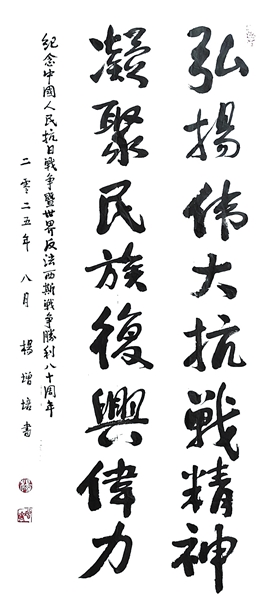 书法《弘扬伟大抗战精神》 原会长 杨增培( 岁) 90