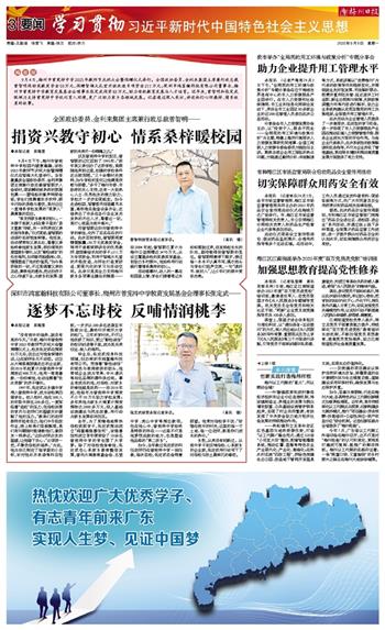 去年,为了更精准地帮扶母校贫困学子,张定武推动成立“鸿富瀚慈善信托”,该慈善信托成立首年便资助了10余名曾宪梓中学的学生圆了大学梦。除了对母校饱含牵挂,张定武也心系家乡教育整体发展,曾向大埔教育基金会、古埜中学、虎山中学等捐出款项。但在他心中,曾宪梓中学始终是特殊的存在——这里不仅是他梦想启航的地方,也是塑造他品格的“第二故乡”。