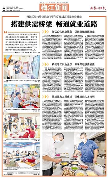 就业是民生之本,近年来,梅江区不断完善公共就业服务体系,下好培训就业服务“一盘棋”,引导劳动者端牢“技能碗”,打通就业供需“最后一公里”,多维度促进高质量充分就业。今年以来,该区城镇新增就业2640人、失业人员实现再就业1501人,开展补贴性职业技能培训和“粤菜师傅”“广东技工”“南粤家政”三项工程技能培训2000多人次。