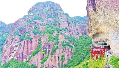 位于擎天峰半山腰的灵通寺,背倚火山岩绝壁,下临万丈深谷,素有“南方悬空寺”之称。