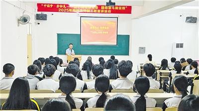 2025年梅州市劳模工匠宣讲活动走进多个县(市、区)学校及企业。图为在丰顺县职业技术学校宣讲。