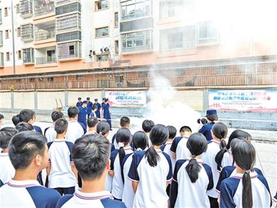 在兴宁市实验学校,为了让青少年掌握实用的消防技能,消防人员现场演示了灭火器、消火栓的正确使用方法。(图片均由学校提供)
