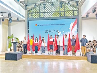 蕉岭县2025年暑期大学生“百千万工程”突击队行动启动活动中举行授旗仪式。
