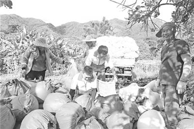 柚林里,农户正将采摘下的柚子打包运走,处处洋溢着丰收景象。(汪敬淼 摄)