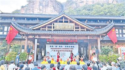 平远推出“非遗进景区”活动,让游客在游玩中近距离感受非遗技艺的魅力。图为在南台卧佛山景区,广东汉剧精彩上演。(平远县委宣传部供图)