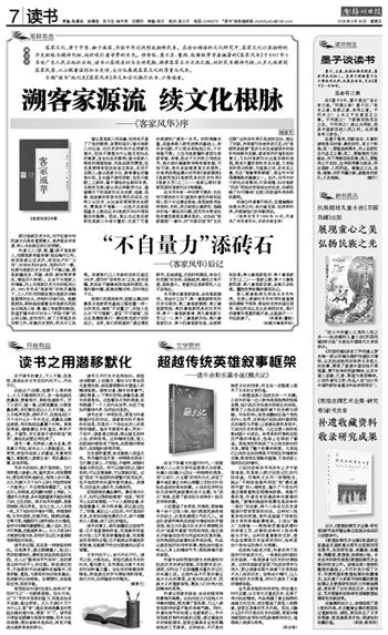 曾以是客家人而自豪,但终究不甚了了他的源流、发展和延衍;曾为客家人对社会、对历史所作的杰出贡献而高兴,但说不清楚为什么能达到如此的高度,发生如此的影响;曾为客家人特有的倔强性格、优良品质而赞美,但总是觉得有些说法言过其实,反而不足服人;曾以客家文化、教育事业的蓬勃兴旺,且长盛不衰而欣慰,但也只能数二三家珍,看不清他的全貌和本质,主流和支流;曾以有这样勤劳无比、盛誉满天下的客家妇女为光荣,祖辈、母辈、姐妹辈的英姿本色常历历在目,但很少从历史、从社会的更深层次去探究,赞美多于理解……这些不足或困惑基本上都在这本《客家风华》中得到解决和解释。因此,我认为这是目前研究客家人中有分量的、达到了可喜的深度和广度的一本书。材料搜集丰富,在继承前人研究成果的基础上,有许多创新,不少观点有独到之处,十分难能可贵。三位非客家籍作者因与客家有缘、有情,经近千日的努力写成此书,绝大部分篇章都写得有理有据,可信可读,有许多段落更是文采斐然。对我来说得益最大的则有《客家源流》《客家民性》《客家民系的历史作用》《客家文艺(之二)——客家山歌》《客家民居》《客家妇女》等篇章。