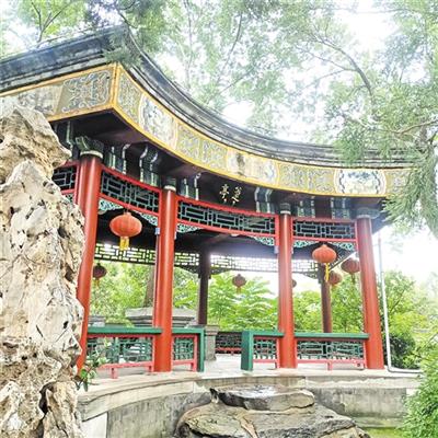 沿曲径前行,左侧南湖波光粼粼,右侧山石错落,花木荟萃,芳草萋萋。不多时便到了“南楼”。康熙年间,其主人纳兰性德曾在南楼邀请文人墨客吟诗作赋。楼房内有纳兰性德的简介和不同时期的诗词歌赋作品,还介绍了他为清初社会稳定、满汉民族融合做出不可估量的贡献,他为人真诚、扶危济困、热心助人,深受汉人敬重。