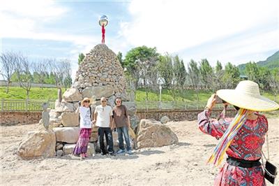 游客在“大地作品”前合影留念。(汪敬淼 摄)