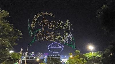 2000架无人机在夜空中勾勒出绚丽图案,点亮梅江两岸。