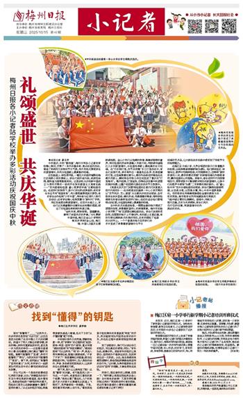 今年国庆、中秋“喜相逢”,梅州日报各小记者站学校精心策划,开展了一系列丰富多彩、亮点纷呈的活动,营造了热闹而又浓郁的节日气氛,用不同形式展现学生的爱国情怀,共同为祖国献上最真挚的祝福。