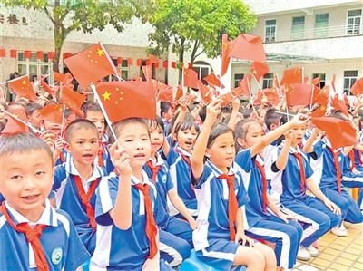 梅江区鸿都小学的学生用画笔倾注对祖国的爱。