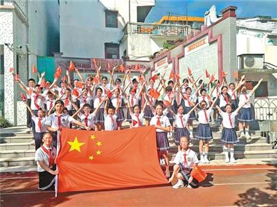 《我爱北京天安门》《歌唱祖国》《红星闪闪》《星星火炬代代相传》……在丰顺县汤坑镇第一中心小学开展的以“双节同庆、艺心爱国”为主题的庆祝活动现场,各年级学生依次登场,满怀赤诚,用最清澈的嗓音,唱响学校德育处和音乐教研组老师们细心选定的适合他们歌唱特点的红歌,为祖国母亲献上最真挚的祝福。