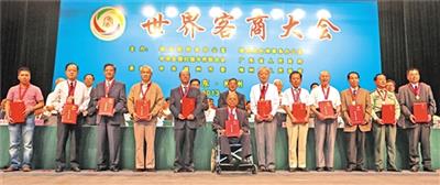 第三届世界客商大会上,首届“叶剑英奖”授予著名慈善家曾宪梓、田家炳及王佛松、汪懋华等14位梅州籍院士。(高讯 摄)