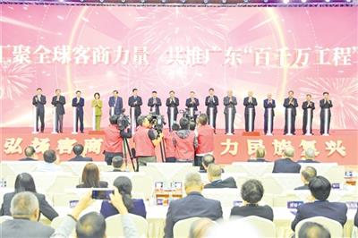 第六届世界客商大会现场举行了全球客商支持广东“百千万工程”启动仪式。 (吴腾江 摄)