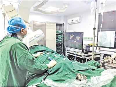 中山大学附属第三医院粤东医院心血管内科心脏电生理团队在为患者实施“阵发性室上性心动过速射频消融术”。(医院供图)