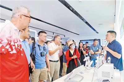 ▲今年7月,张志伟(左四)带领美洲客属商会代表团在广东深圳考察企业。(受访者供图)