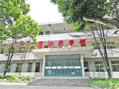 ▲东山中学“宪梓教学楼”是改革开放后港澳台同胞和海外侨胞在梅州的第一个捐资项目。(钟孟科 摄)