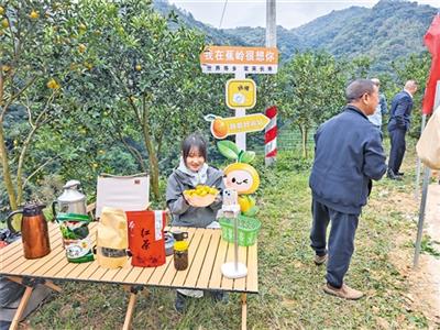 主播在金桔果园直播带货。(杨乔颖 摄)