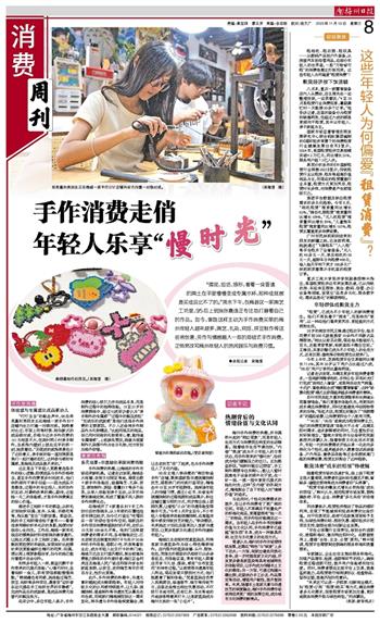 在采访中,多位年轻人表示,手作消费的核心吸引力并非成品本身,而是制作过程中的独特体验。18至35岁的消费群体中,超过七成受访者认为“亲手制作的专属感”“过程中的解压放松”“完成后的成就感”是他们选择手作消费的主要原因。不少人还会将手作制品作为礼物赠送,“比起花钱买的商品,自己花时间做的礼物更有心意,能传递专属情感”,上班族张雯说,她曾为闺蜜制作扎染围巾作为生日礼物,对方收到后格外珍惜。