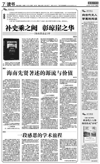 本期“读书”版撷取《海南著述志》前言、序、后记,帮助广大读者一窥此部著作的精华与风貌。敬请垂注。