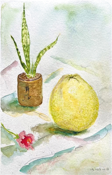艺术如何服务乡土?美育如何润物无声?梅州市女美术家协会以一场“‘柚’见美好”主题创作给出了精彩回答。近日,在参加“向美而行·澹彩流光”成人公益水彩培训基础上,女艺术家和学员们以“‘柚’见美好”为主题,用画笔聚焦象征丰收的金柚,创作了一批色彩和谐明快,情感真挚饱满的水彩画作,充分展现了女性视角下对乡土生活的细腻观察与深情讴歌。