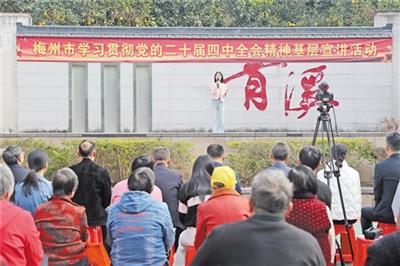 本报讯 (记者洪国栋)12月4日,梅州市学习贯彻党的二十届四中全会精神基层宣讲活动在大埔县青溪镇文体广场举行。活动与学习贯彻习近平总书记视察广东重要讲话重要指示精神相结合,通过理论宣讲、文艺表演、互动竞答等多元形式,引导广大干部群众把思想和行动统一到习近平总书记重要讲话重要指示精神上来,把智慧和力量凝聚到全会确定的各项任务上来。