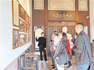 黄遵宪后裔在黄遵宪纪念馆参观。(李盛华 摄)