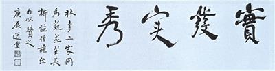 其中饶宗颐先生所写的横批“实发实秀”四个大字引人注目,其落款的小字为“林李二家同为艺苑茁长新葩,借葩经句以赞之。庚辰选堂”。“实发实秀”出自《诗经·大雅·生民》,系记载后稷诞生情况。有意思的是林李两公的姓氏皆有植物之意,以此来称许二家根深叶茂、果实累累,深蕴着饶公的祝贺与期望。