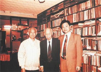 2000年为策划举办纪念林风眠、李金发“百年诞辰”,本文作者(右)专程赴港拜会饶宗颐先生(中)。
