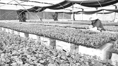 ▶大棚内工人忙碌的身影。(荣丰供图)